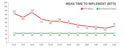 Another standard KPI for maintenance programs is Mean Time to Implement (MTTI). This is the time from when a defect is first noticed to when it is addressed via repair. Many of you are probably familiar with the Asset Failure Curve, or IPF curve, which shows the relationship between how early a defect is identified and the cost of fixing the problem.